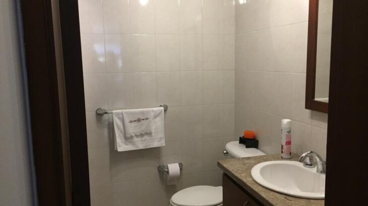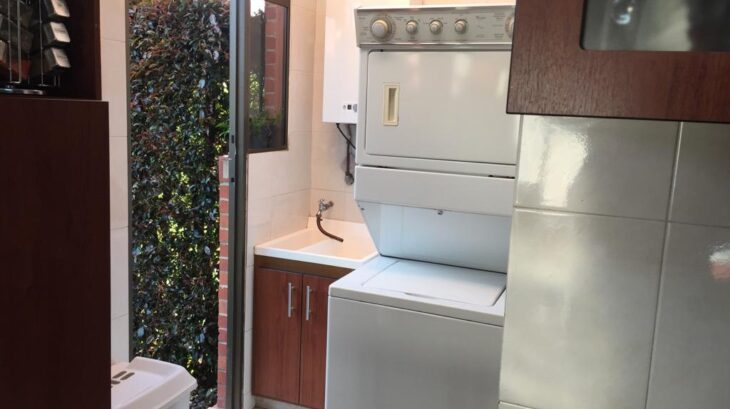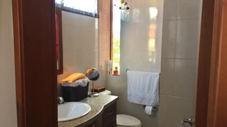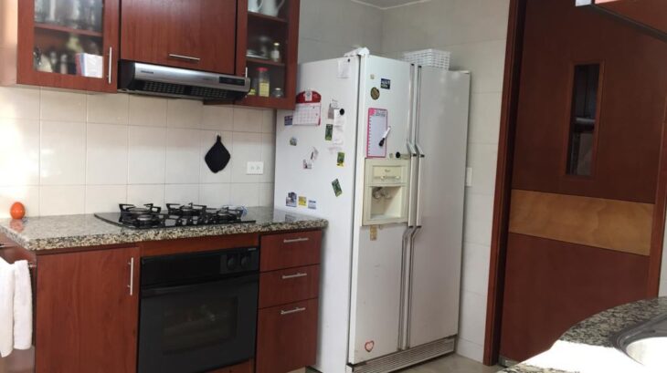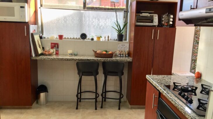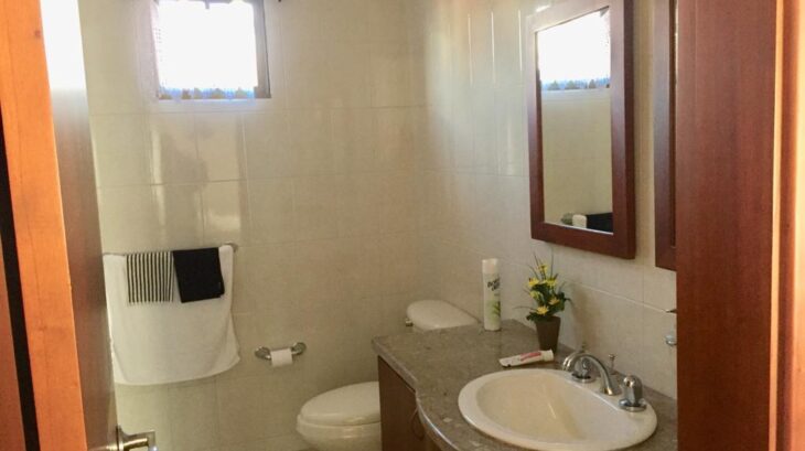Cuenta con sala y estudio en piso de madera laminada (el estudio puede adecuarse como habitación, ya que dispone de closet y puerta). Además, baño completo, comedor, cocina totalmente equipada, zona de ropas, garaje y depósito. El resto de la planta tiene piso en porcelanato.