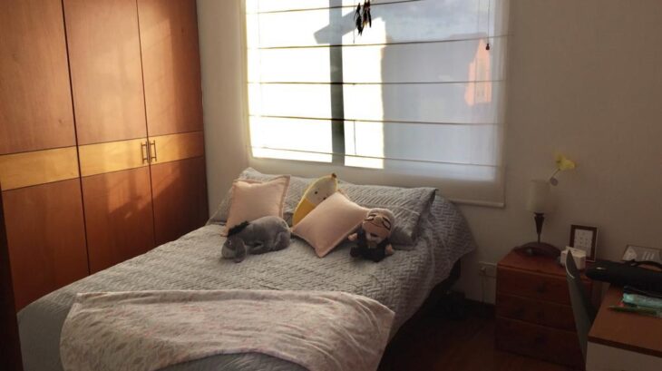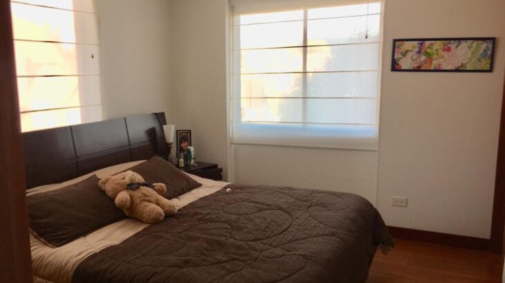 Dispone de tres habitaciones. La principal tipo suite, con baño privado y walk-in closet. Las dos alcobas auxiliares cuentan cada una con baño privado. También incluye un amplio hall de alcobas con closet de linos y acceso a terraza. Todos los pisos son en madera laminada, excepto los baños.