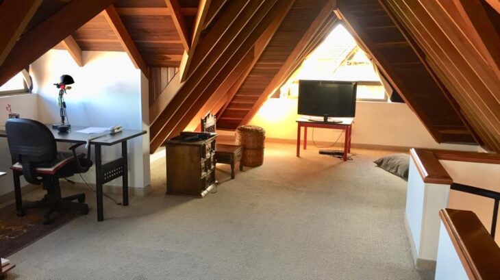 Ubicada sobre las dos alcobas secundarias, con acceso por escalera en caracol. Posee ventanas en todos los lados, lo que brinda excelente iluminación natural. Actualmente tiene piso en tapete.